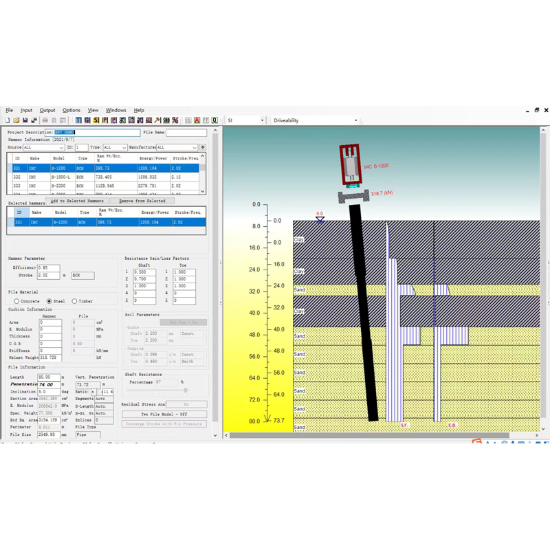 功能強(qiáng),用戶界面友好。新增加的功能提高了樁身應(yīng)力、承載力、錘擊數(shù)和打樁時(shí)間的預(yù)測(cè)精度。