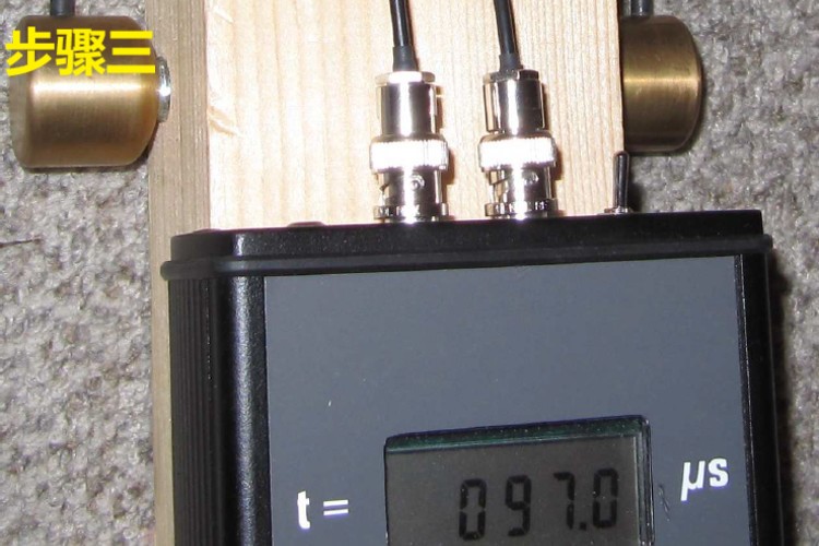 3)打開超聲儀,傳輸時間將以μs的形式顯示在屏幕上。打開開關后如果顯示“0000”,表示正常;